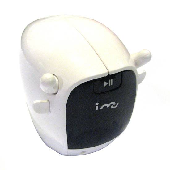 This is a cow shaped vibration speaker. The speaker has a intrigue appearance of the shape of a cow head. The funny looking vibration speaker propagates sound waves to the object beneath and sets the object into resonance for a amplification effect that improves the sound quality.