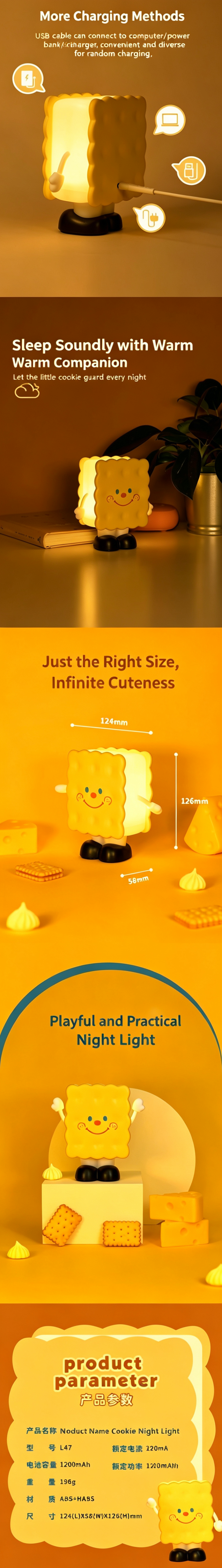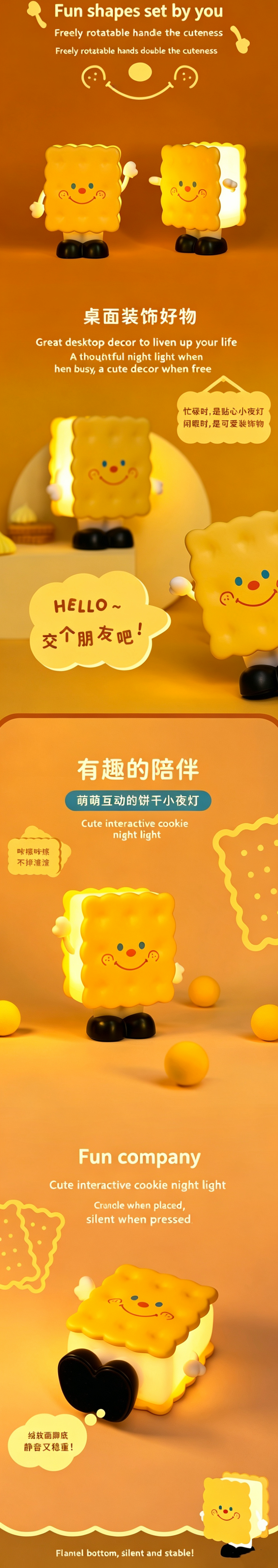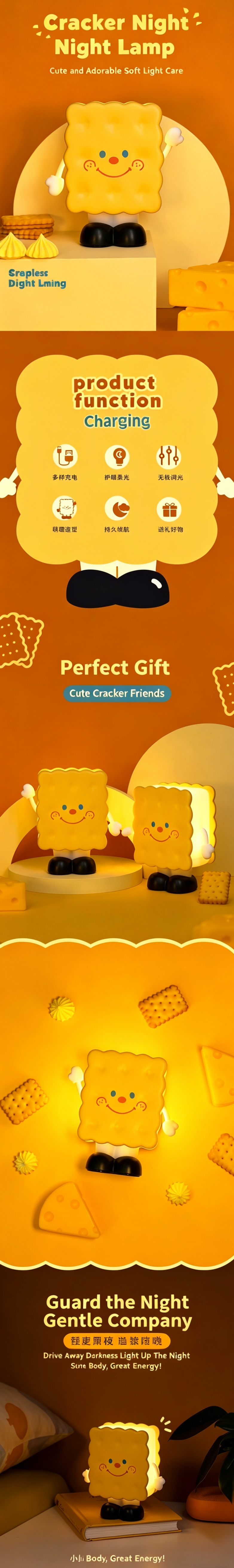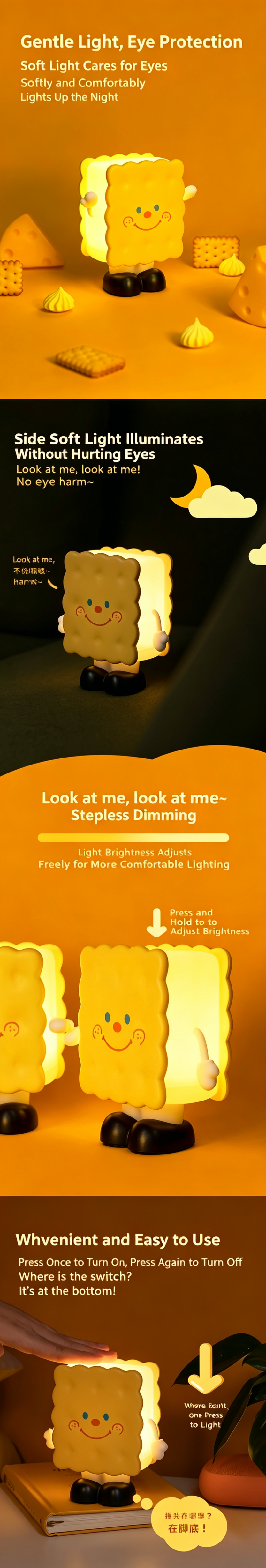 Meet your new adorable bedtime companion: the Cracker Night Light! Designed in a super cute, smiling cracker shape, this creative LED lamp combines playful design with practical functionality. It’s not just a soft, eye-friendly nightlight for kids’ bedrooms and nurseries, but also a charming desk decor piece that brings warmth and joy to any space. Perfect for midnight feedings, storytime, or cozy home decor, it’s the ideal gift for children and anyone who loves cute, functional home goods.
