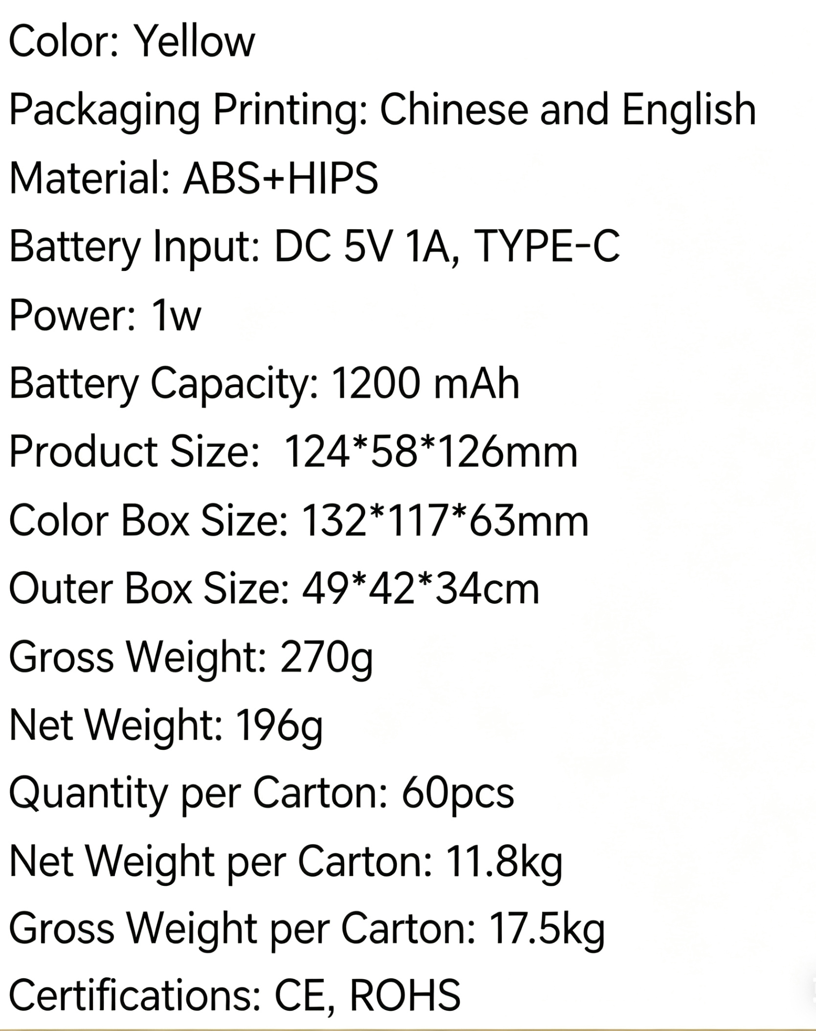 Built-in 1200mAh rechargeable battery with Type-C USB charging. Charge via power bank, laptop, or adapter, and enjoy hours of soft light on a single charge.