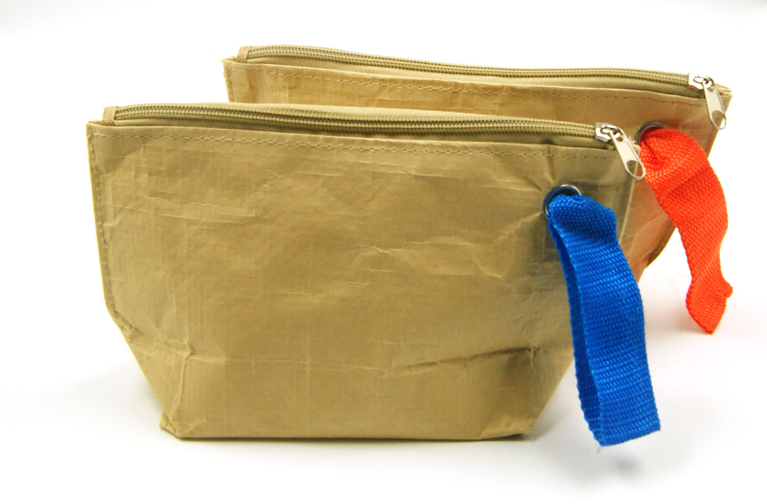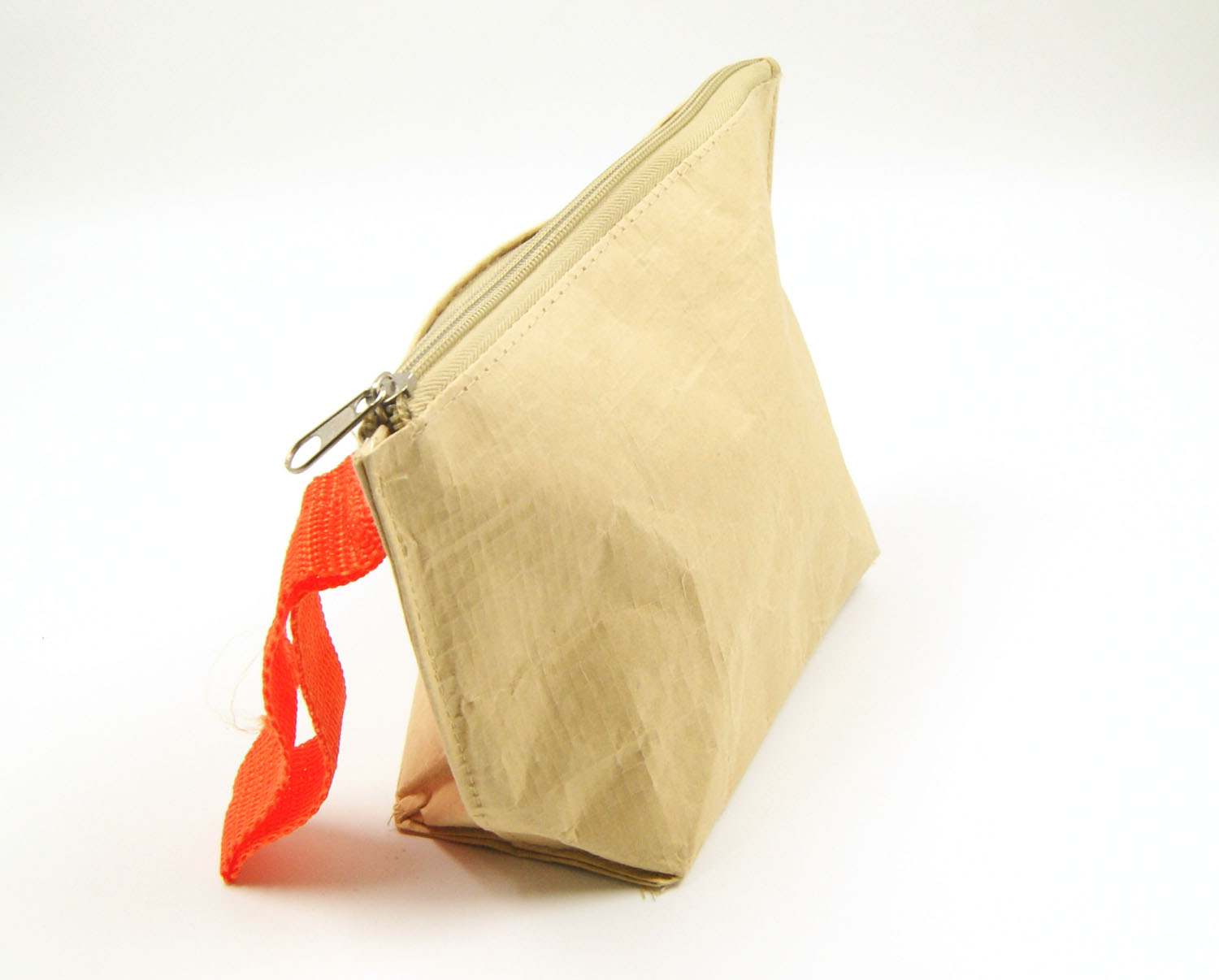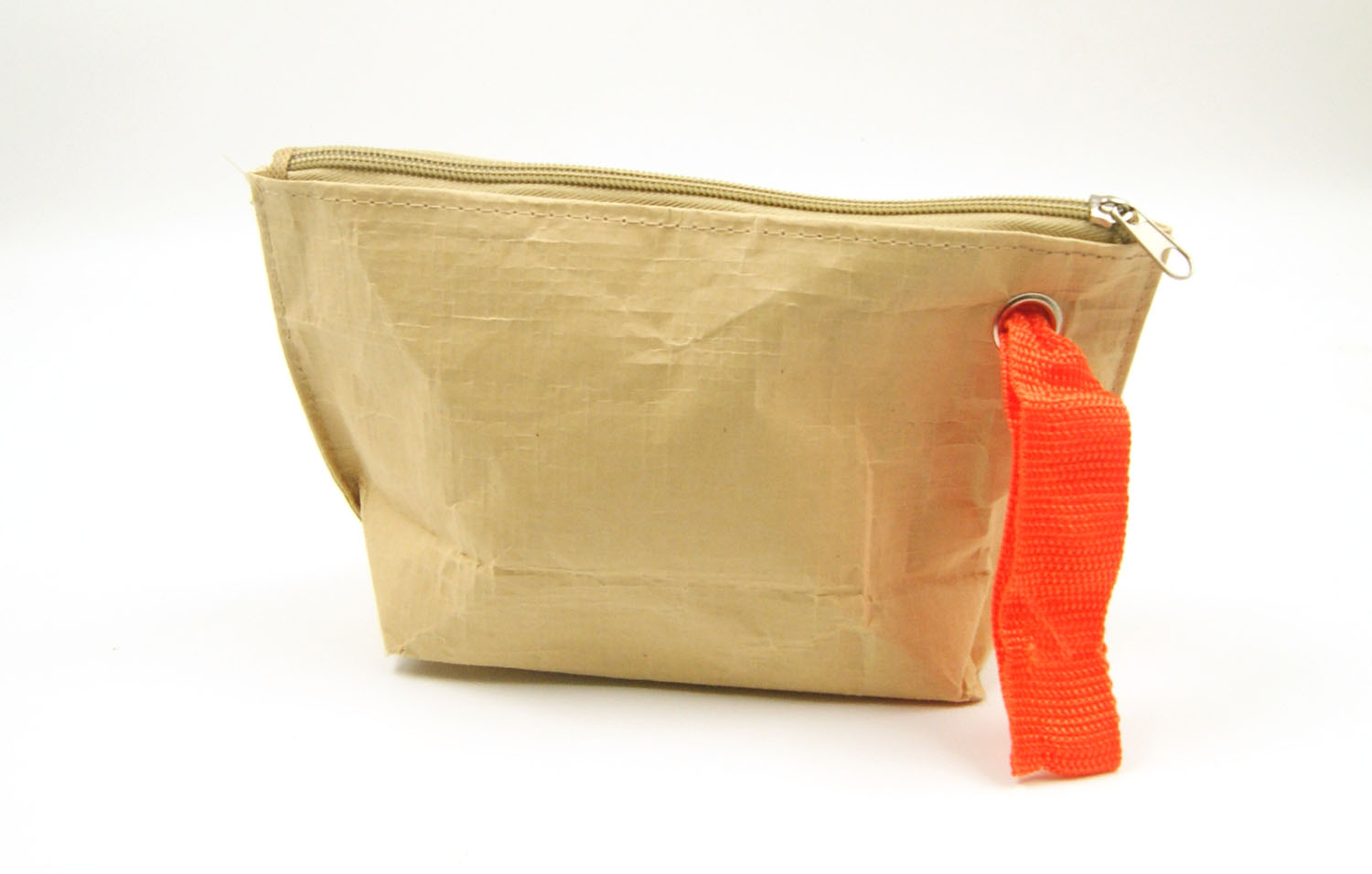 This cosmetic bag made of natural color craft paper simple design, user-friendly