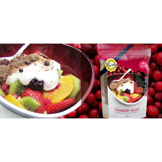 Ground flaxseed and organic dried cranberries, high in omega 3 and fibre