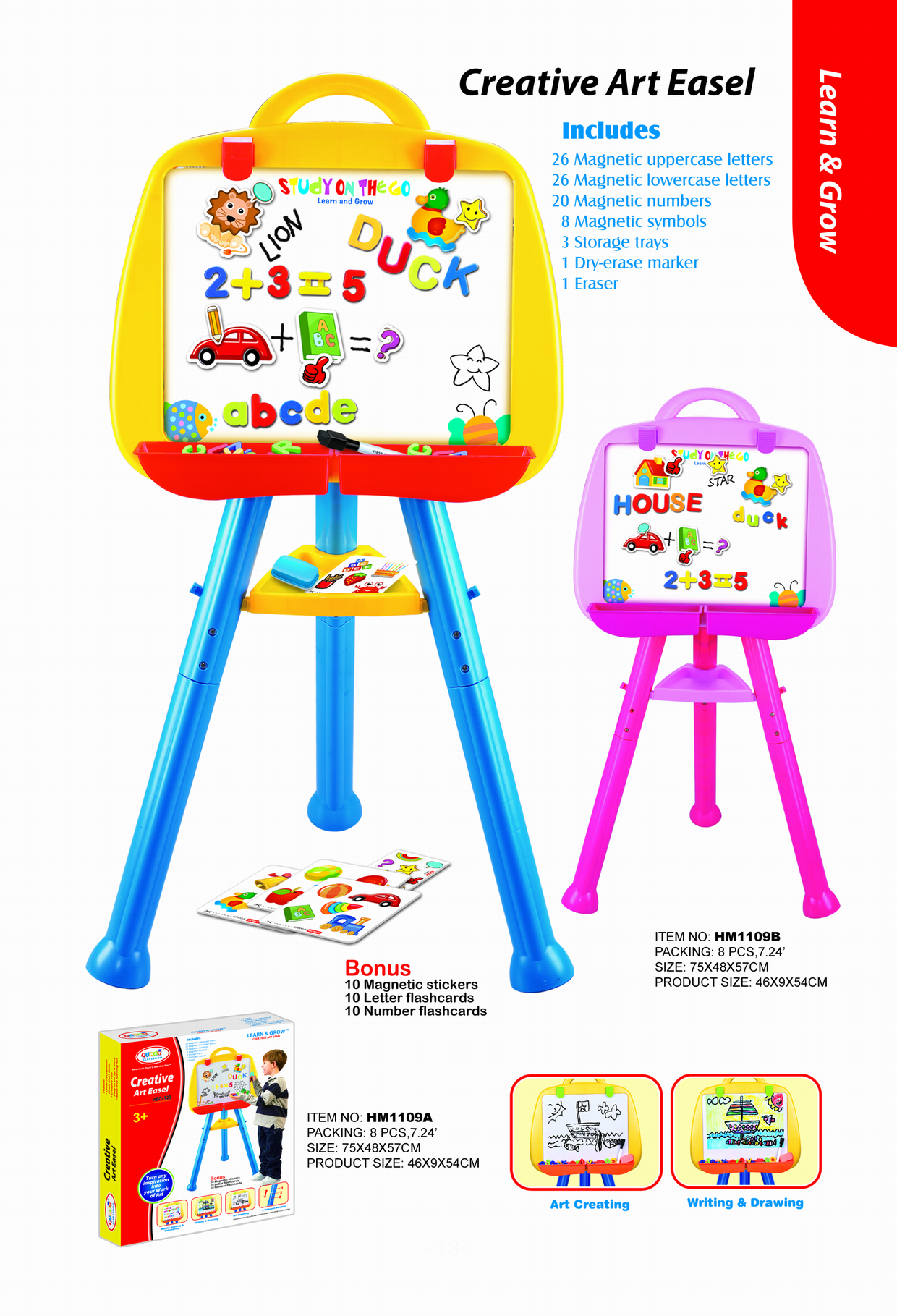 Creative Art Easel with 52 magnetic letters, 20 magnetic numbers, 8 magnetic symbols, 3 storage trays, 1 dry-erase marker, 1 eraser, bonus (10 magnetic stickers, 20 flashcards)