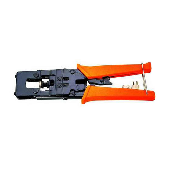 Available is a professional compress crimping tool coming with a sophisticated and durable structure. The tool is ideal for crimping waterproof "F", "BNC", "RCA" plugs with a ratchet function. It can be adjusted according to the plug length. This superior-quality crimper will sure be a great addition to your household tool box.
