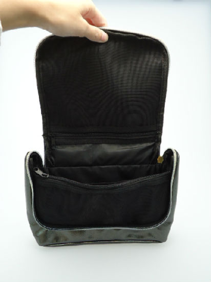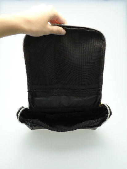 Inside have one zipper pocket under the flap and one open pocket on the back. Zipper pocket make with nylon mesh.