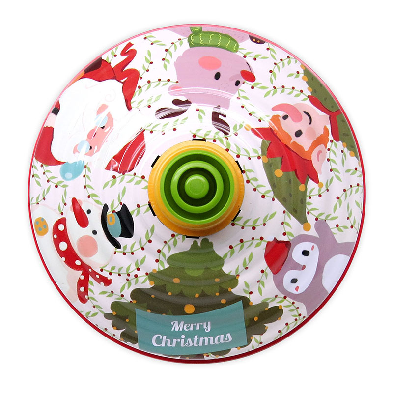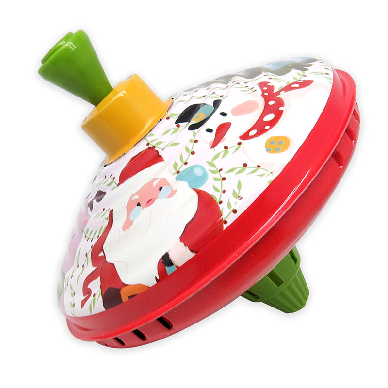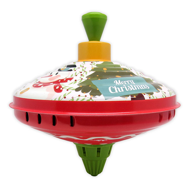 The Christmas Tin Peg Top is a delightful and nostalgic toy that will bring joy and entertainment to children and adults alike during the holiday season. Made from durable tin, this classic spinning top features a festive Christmas design, complete with vibrant colors and intricate details.