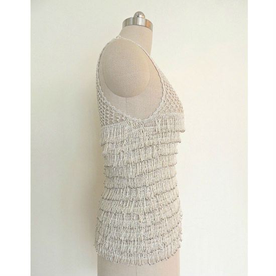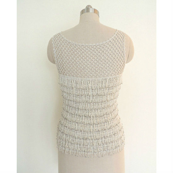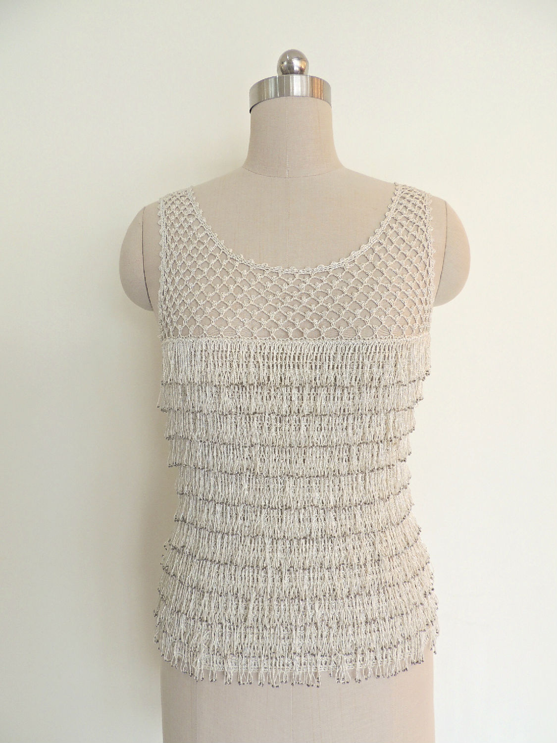 Ladies 90% viscose 10% lurex crocheted top w/ beads