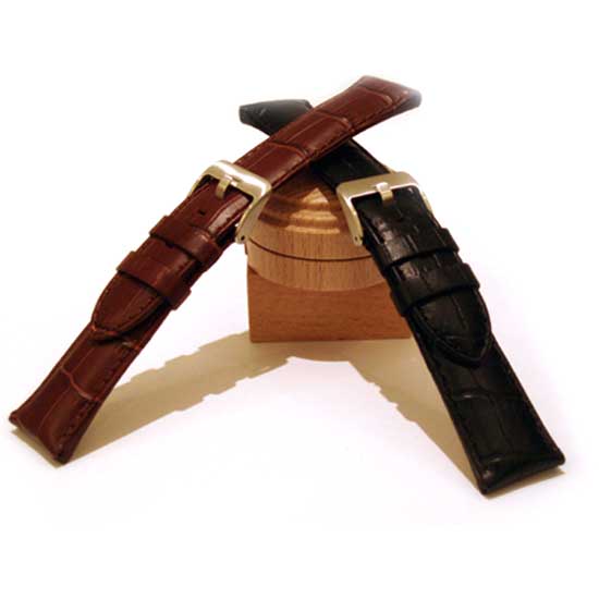 Featured is an exquisitely crafted crocodile-grain watch band. Made with superior remborde finish, this watch band is an elegant complement to any watch. A genuine leather lining gives this watch band a luxurious, soft a touch.