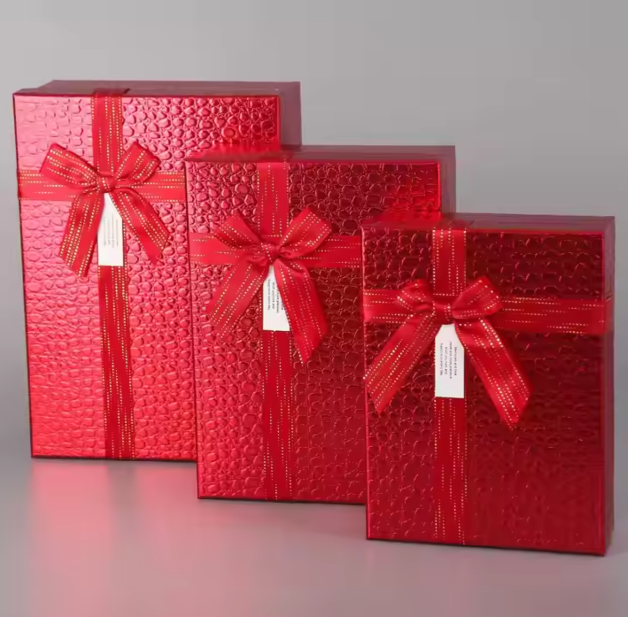 Crocodile Pattern Rectangular Paperboard Gift Box 4C Stereo Cross Knot Ribbon for Wedding Candy Hand Decoration Candle Wallet