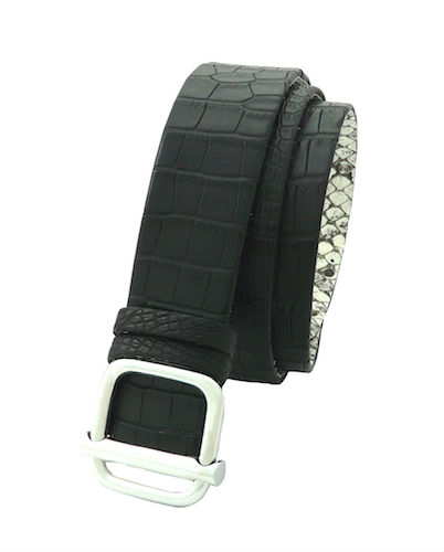 Genuine Python and Crocodile leather belt with "Phi" belt buckle in sterling silver with rhodium plating.