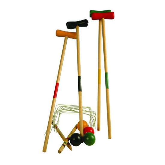 This croquet set comes with 4 mallets, 4 balls and wickets. The mallets are manufactured with delicate workmanship. It can be played in the backyard and is suitable for people of all ages.