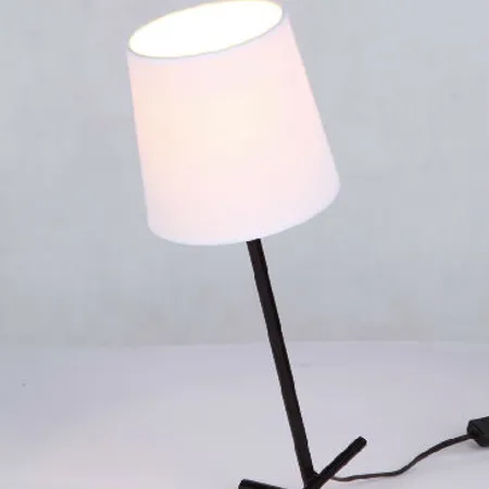 This lamp designs with a unique cross base, the thick leg stands firm and solid at the bottom and the other inclines a little bit to reach the ground, helping to support the whole lamp standing up by a slight slope . It would be a good addition to your place.