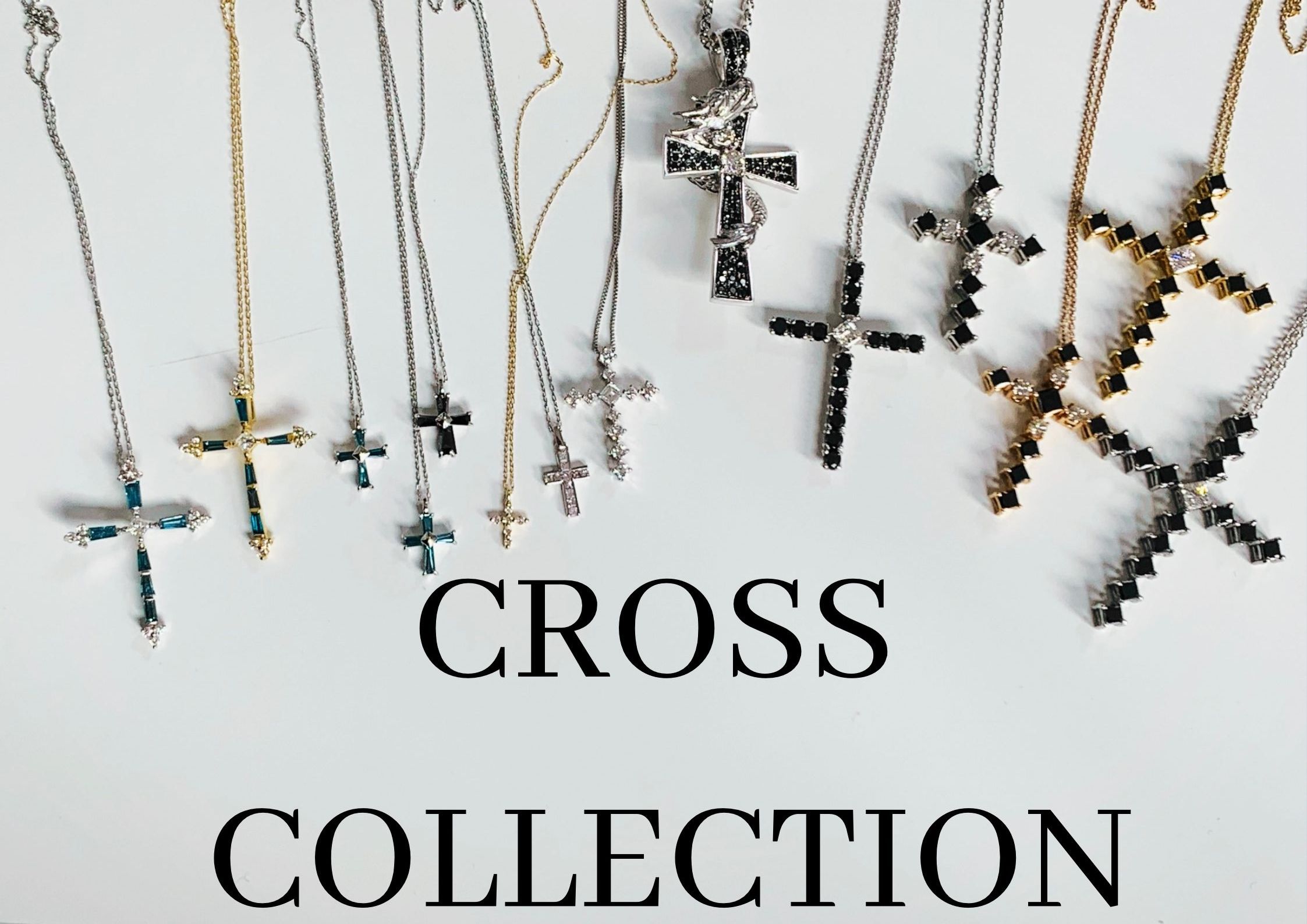 Unique cross collection with blue diamonds and black diamonds