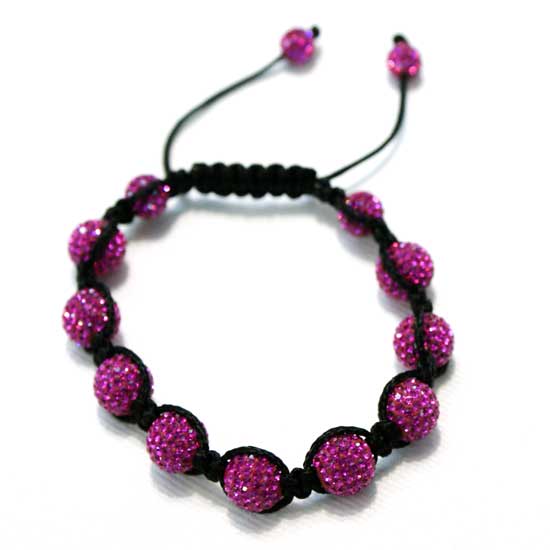 Presented is a crystal bracelet beaded with elegant Swarovski crystals in magenta. The black string-made chain boasts a graceful look. Adorn your wrist with this exquisite bracelet.
