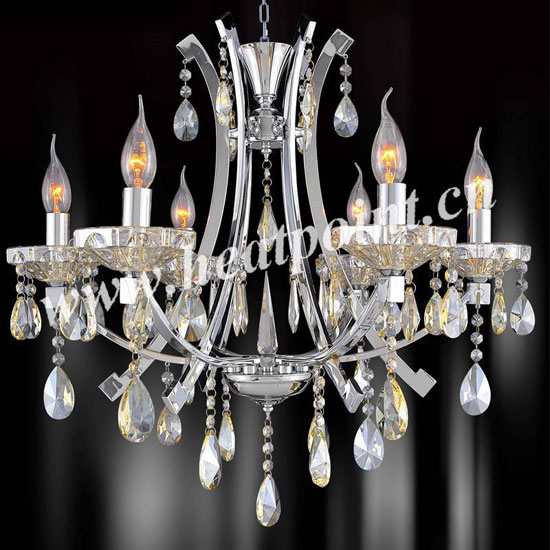 This crystal chandelier appeals to people's eyes instantly with its super deluxe and sophisticated appearance. It comes with multiple candle lights as the light source for a wide light beam angle. The eye-catching crystal decorations add a unique sense to this design.