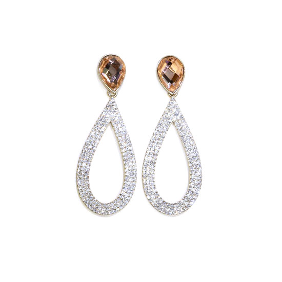 Displayed is a pair of earrings made from premium quality crystals. The brown-color crystal is further accented by dazzling crystal paving. They add grace and charm to your evening outfit.