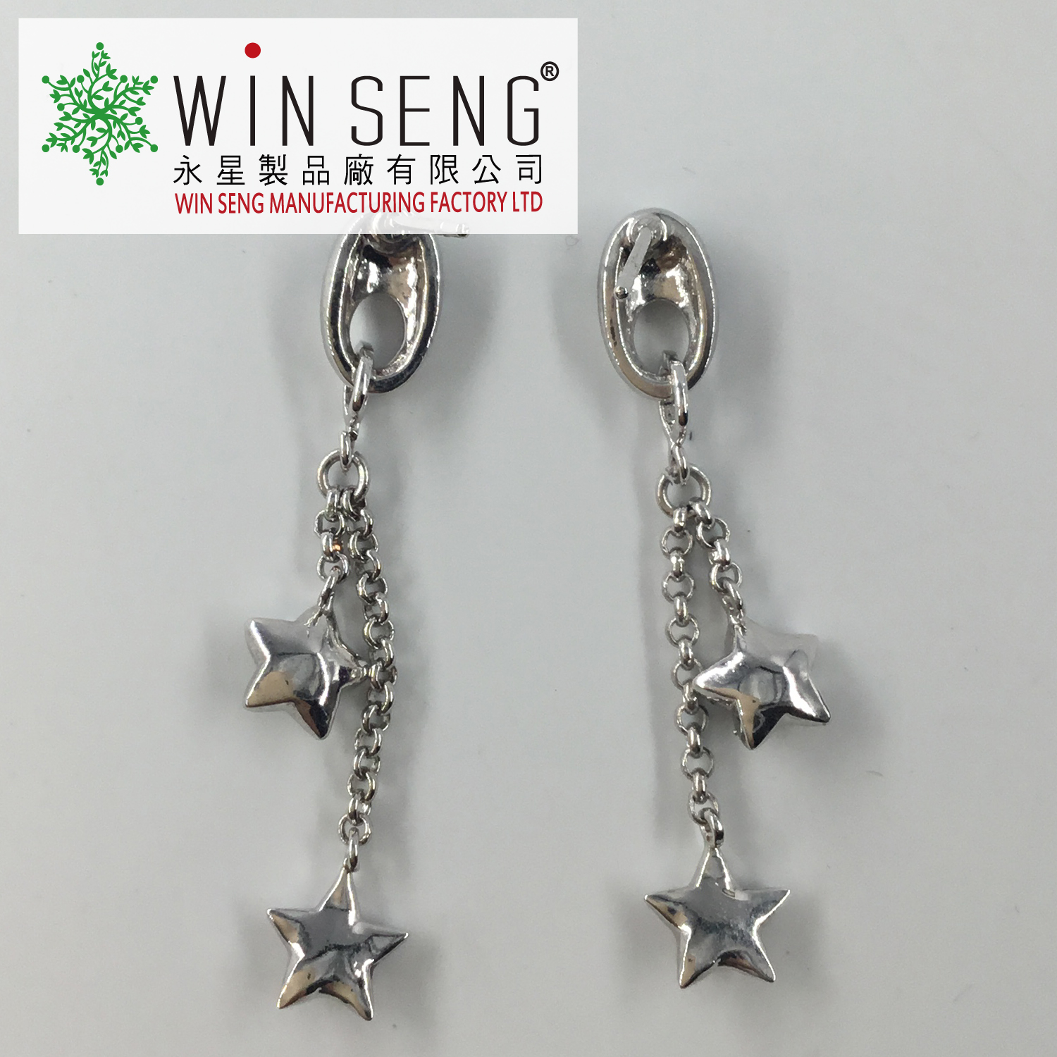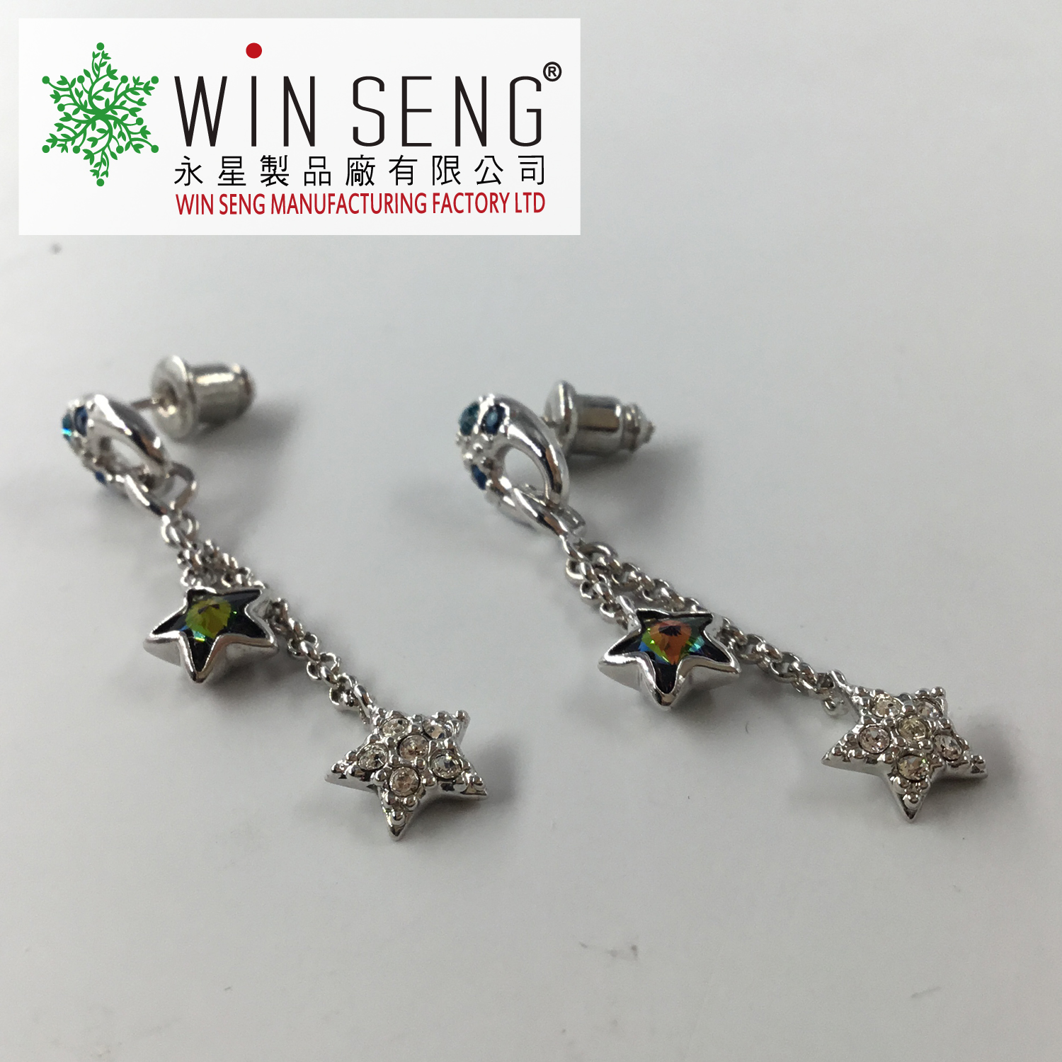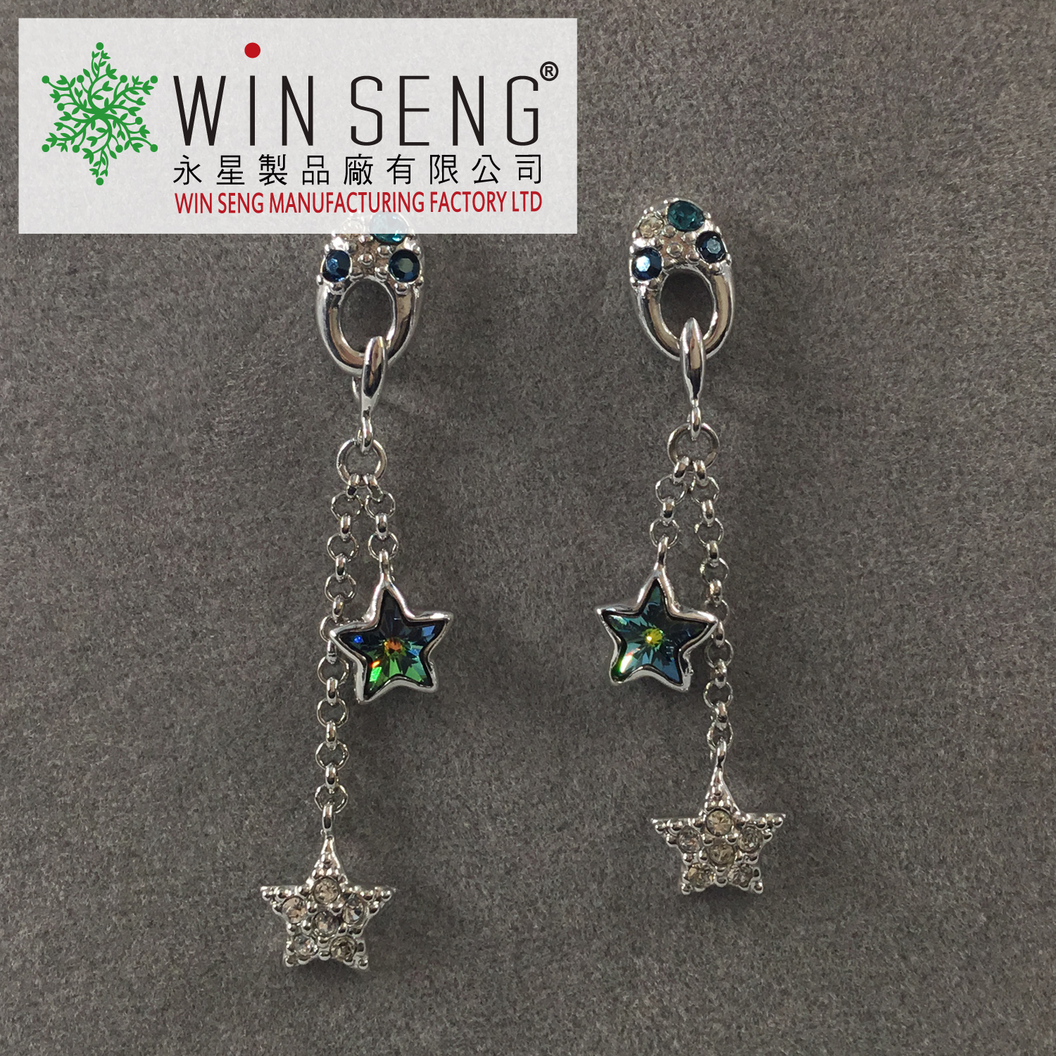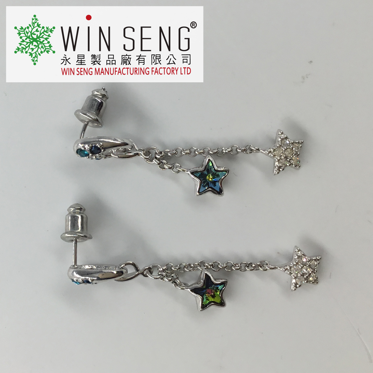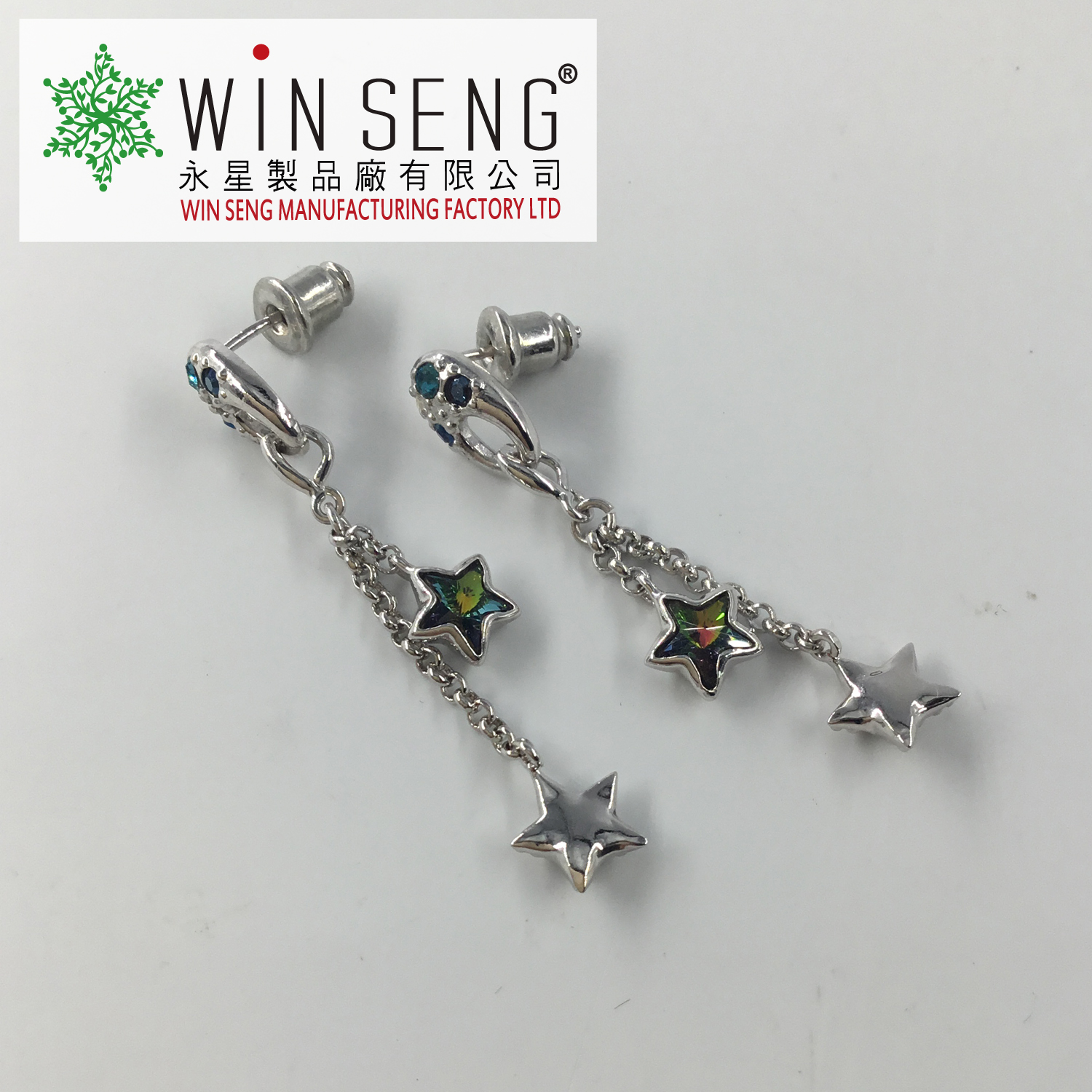 Add a sparkling touch to your look with this silver earring. It is adorned with two dangling star charms including one silver gravel star and one blue crystal star. This silver earring is set with stones on the loop and is a fashionable and elegant accessory for any occasion.
