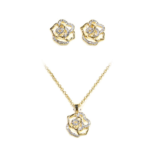 This crystal glass jewelry set comes with a floral design for a delicate look. The items are half paved with crystal glass for ultimate sparkle. It is ideal for embellishing your elegant outfit.