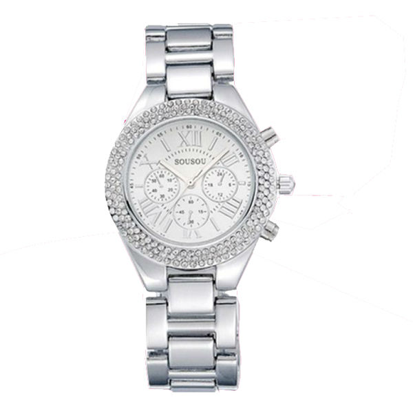 This eye-catching trendy quartz watch in sparkling tone is decorated with luxurious looking CZ crystals and high fashion designed bangle bracelet attaching to a jewelry clasp. It comes with a metal case, metal bangle bracelet, stainless steel back case, analog hands, jewelry clasp, automatic movement, refined workmanship, guaranteed quality and VIP services.