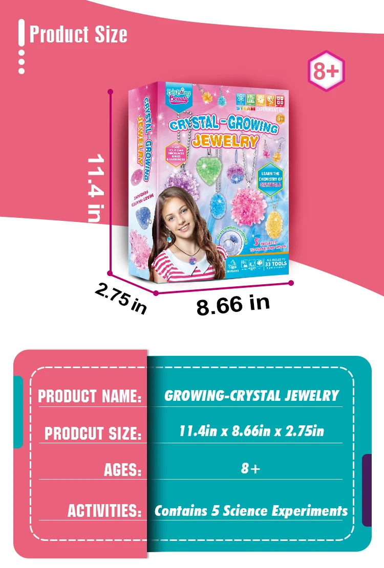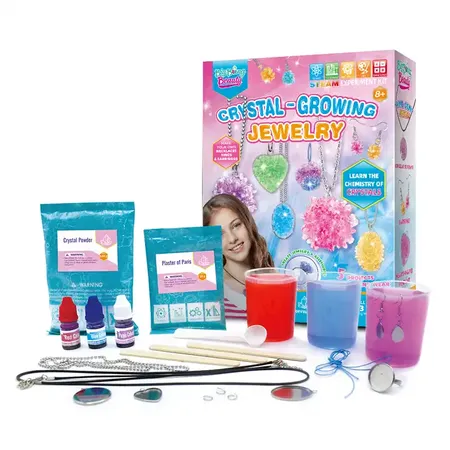 SCIENCE MEETS STYLE: Create 5 trendy pieces of Growing Jewelry through the process of crystallization with the Crystal Growing Jewelry Kit! Make pendant necklaces that sparkle and shine with crystal charms.