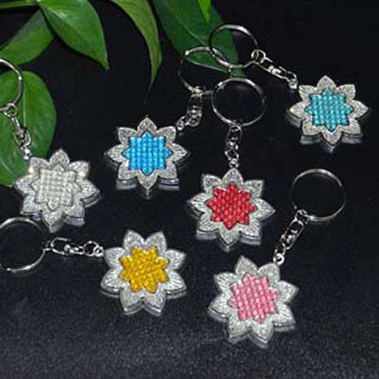 This key chain in an attractive floral shape is ornamented with glittering crystal stones for extra appeal. The sophisticated craftsmanship highlights the whole look. This bling-bling crystal key chain makes a great gift for friends.