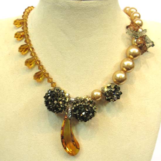 - Material: Swarovski crystals, Swarovski pearls, Italian silk.