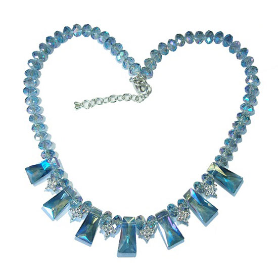 This beaded statement necklace is adorned with chunks of crystals and heart-shaped synthetic diamonds. The softly-hued necklace can be easily paired with sleeveless dresses. It comes in other fancy colors for more options.