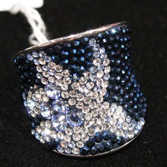Filled with sparkling crystals all over the exterior, the featured ring is a pretty accessory. There is a star pattern on the ring and it is decorated with white crystals. The ring is suitable for grand occasions.