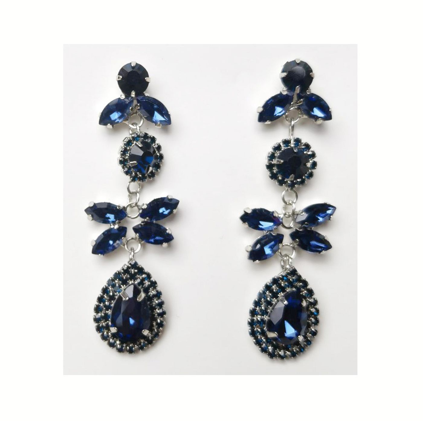 As shown is a high-fashion crystal style silver plated alloy parts drop earring.