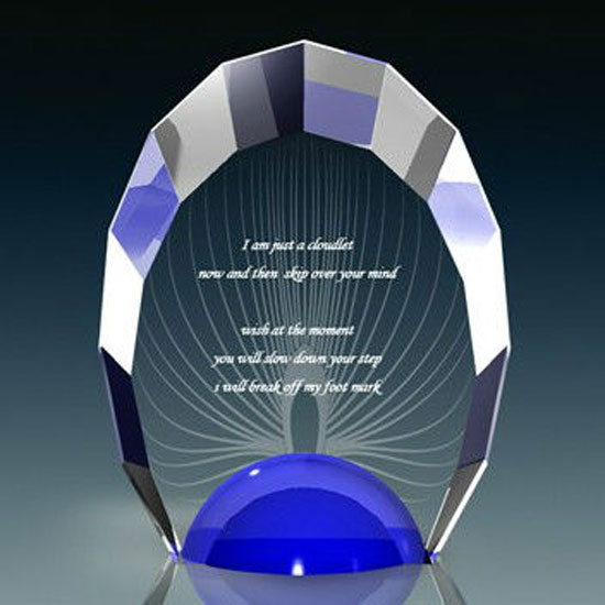This is a crystal trophy that is meticulously crafted with exquisite details. It comes with subtle facets that deliver exceptional sparkles at all angles. The unique wording prints add a touch of style to the whole piece.