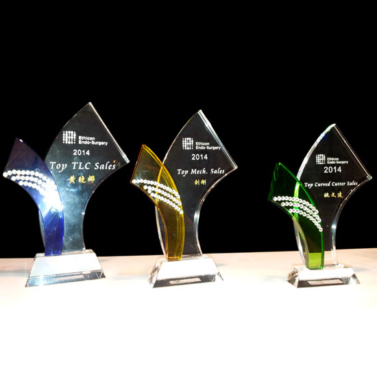 This is a collection of crystal trophies in assorted colors. With curvy elements, these trophies are fashionable and elegant. These high quality crystal trophies are ideal for award presentation.