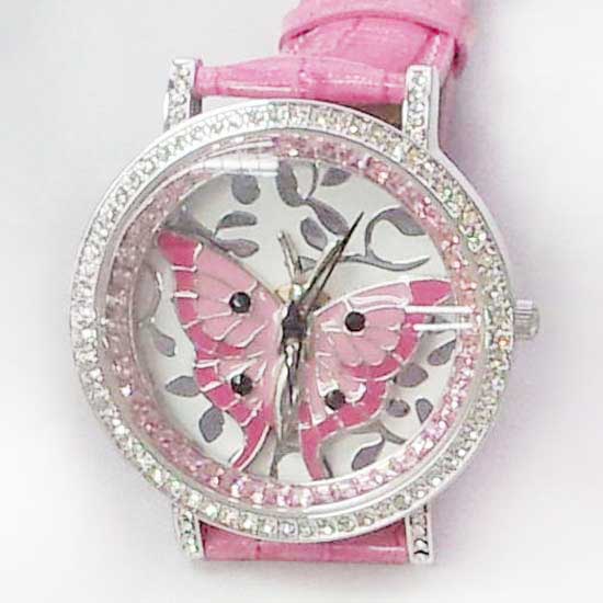 This watch is crafted with first-class Austrian crystals for added glamor. This pink-toned watch features a genuine leather watch strap for a long service life. The round dial comes with a butterfly design for extra style.