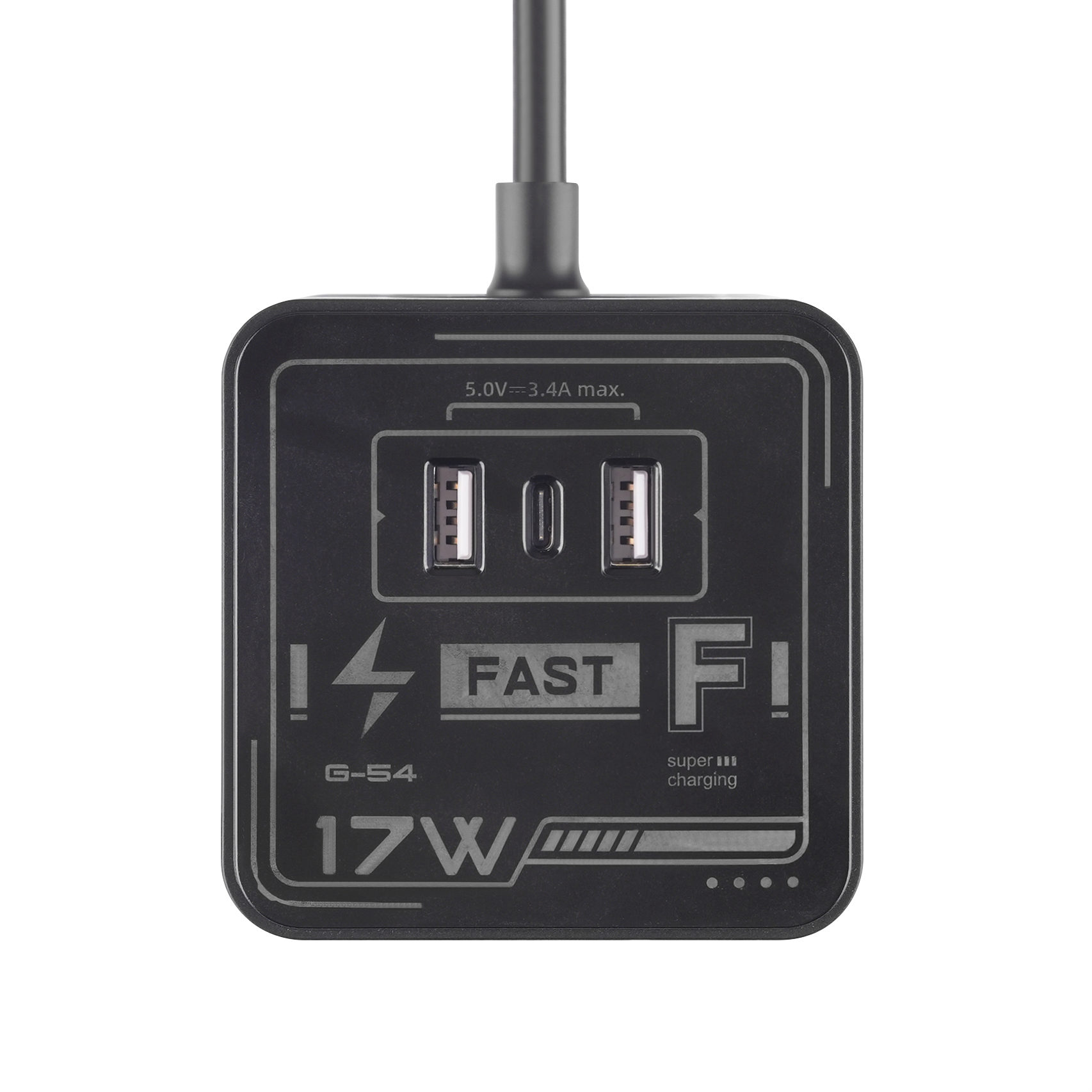 USB-A2+C:5.0VDC,最大电流3.4A,功率17.0W