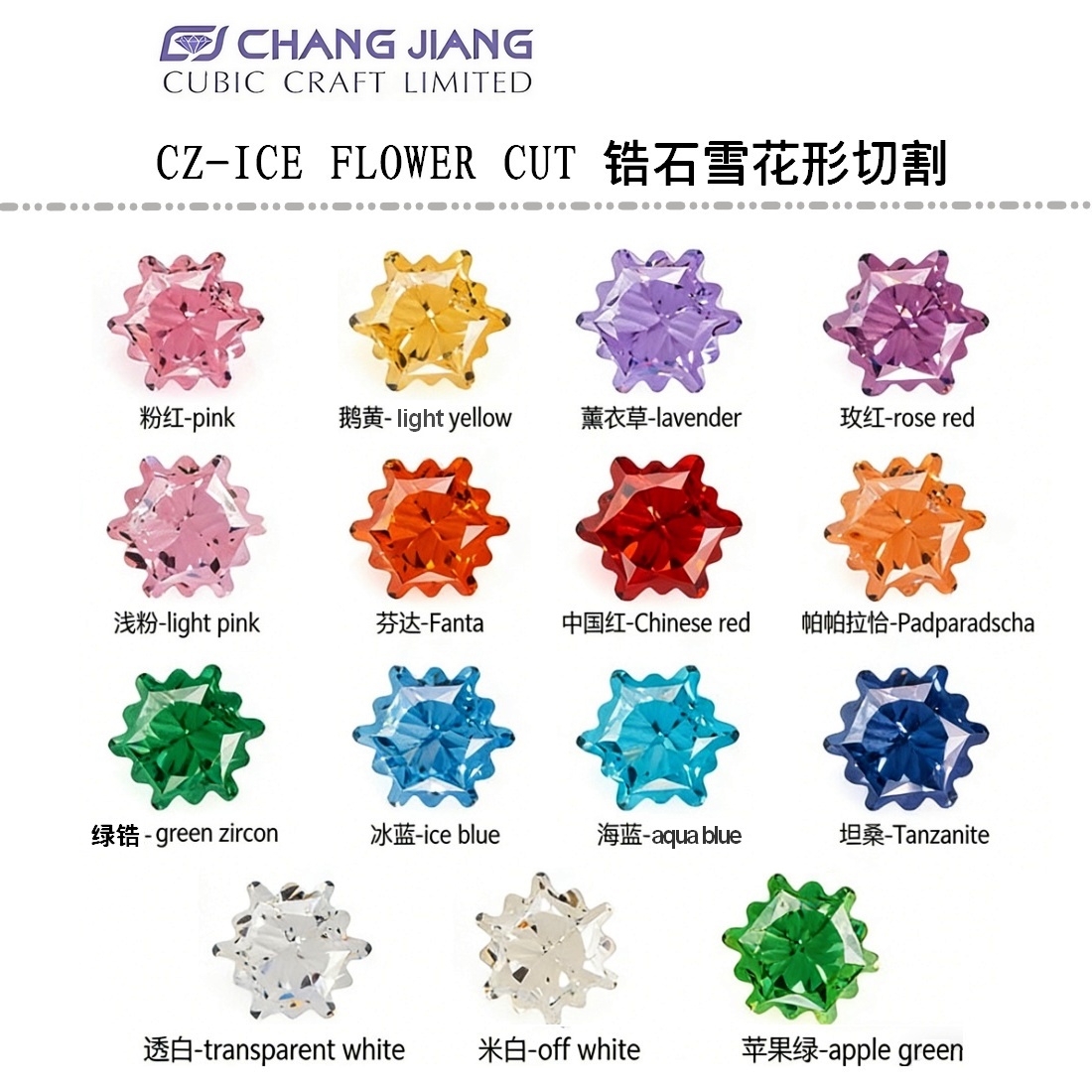 Cubic Zircon Ice Flower Cut Color Card Color CZ