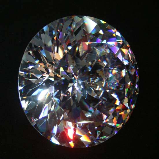 This single cubic zirconia diamond emits glows in different color shades when you observe it from different angles. This delicately carved simulated diamond has a round shape.