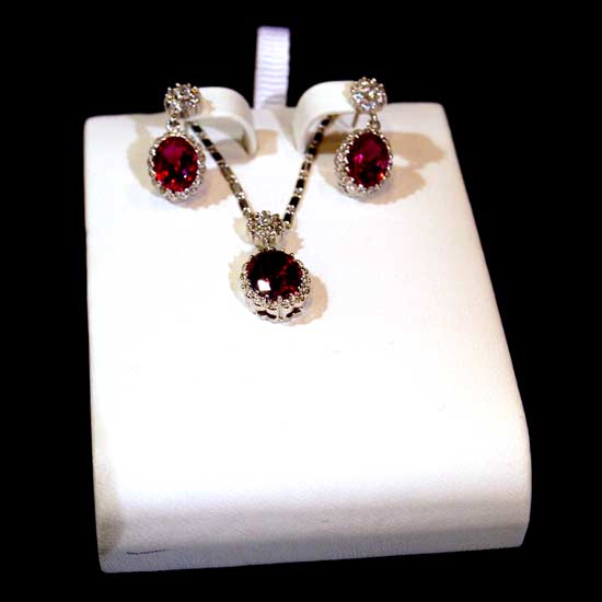 The showcased jewelry set comes with an elegant design and is perfect for any balls or parties. The necklace and earrings feature shiny red cubic zirconia stones. The earrings would deliver dazzling brilliance as you make every single move.