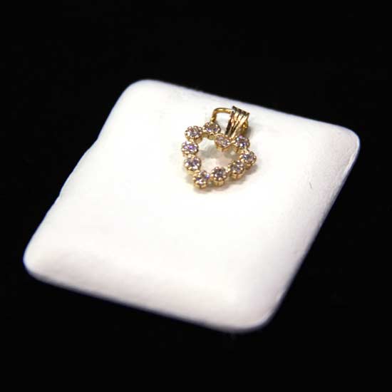 The admirable ladies' pendant bestows a dazzling heart-shaped design, which is finely sculpted with gold for a sparkling appearance. The whole piece reveals meticulous craftsmanship with the arrangement of twinkling cubic zirconia stones. This ravishing cubic zirconia pendant makes a brilliant piece of jewelry for accentuating your evening dresses.