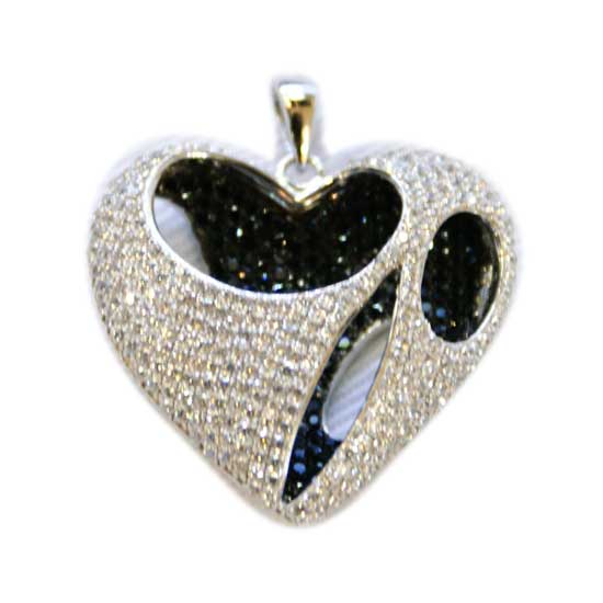 Highlighted is a heart-shaped pendant fully set with dazzling cubic zirconia stones. It boasts beautiful cutouts which display a multi-dimensional effect. This distinguishing pendant must make a stunning necklace element.