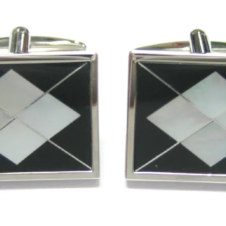 20 x 15mm rectangle with onyx & MOP combo semi-precious stone insert with imitation rhodium plating