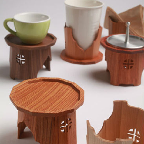 - A cup holder that applied the function and form of Korean traditional small portable dining table. Korea's traditional patterns were carved to add decorative effect.