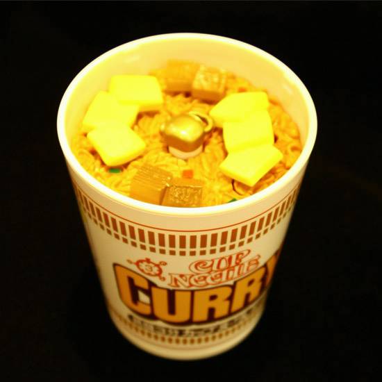 Featured here is an interesting cup noodle puzzle. It includes a noodle cup and pieces of puzzle in the shapes of noodles and other food. The game starts when the player turns around the bottom part of the cup. The pieces have to be assembled and placed into the cup. The whole item blasts if the player cannot finish in 3 minutes.