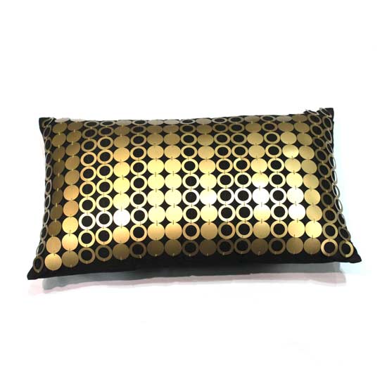 This gorgeous cushion features a rectangular shape. It comes with circular golden patterns, which showcase a hint of uniqueness. Decorate your home with this beautiful cushion.