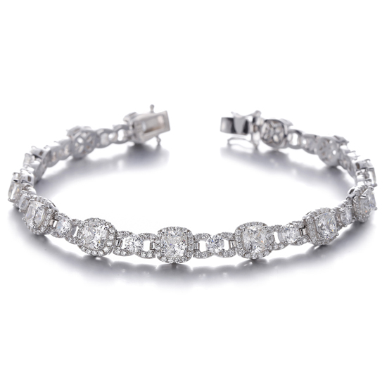 Cushion And Round Diamond G Color Cubic Zircon Rhodium Silver Bracelet