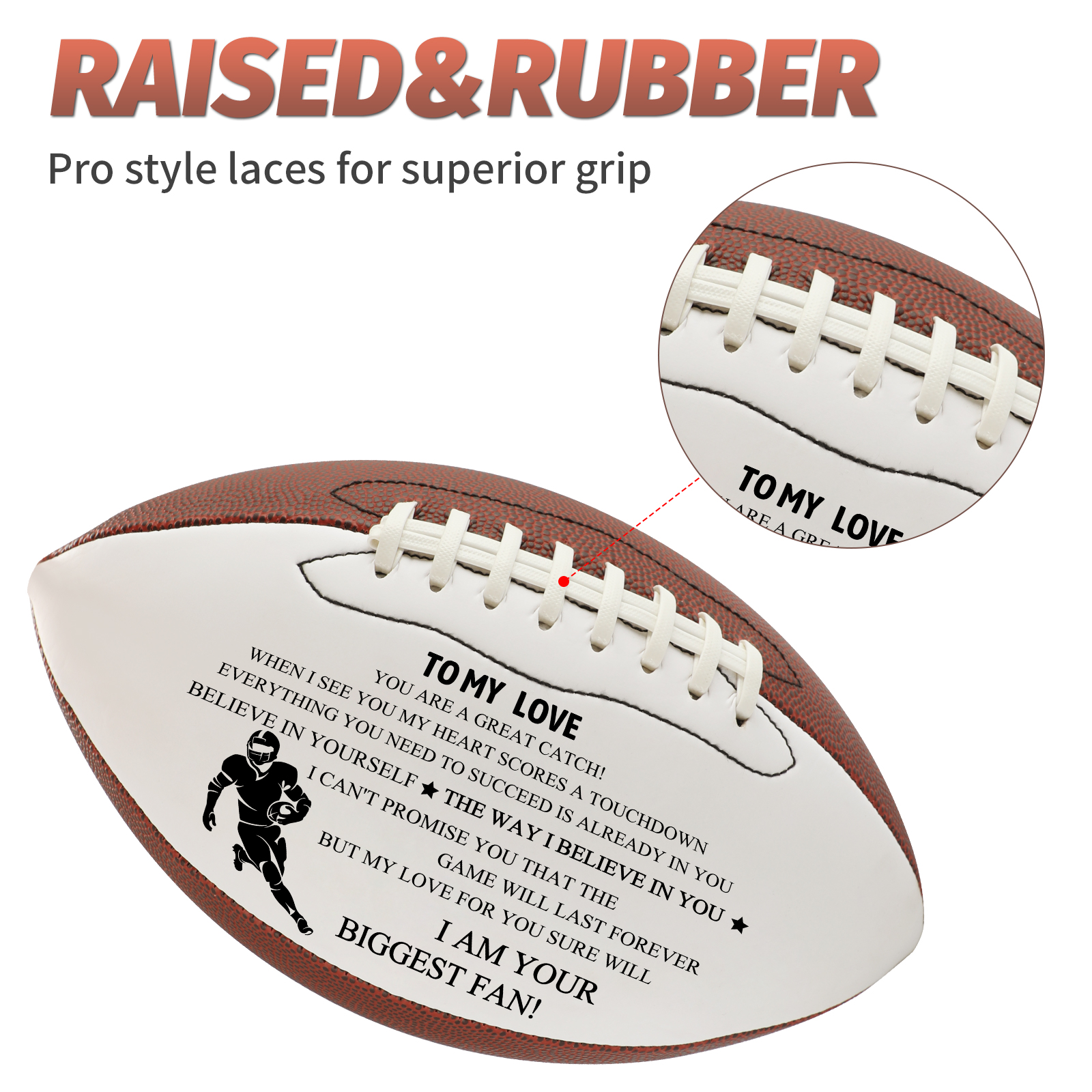 This Custom Engraved American Football is a heartfelt personalized sports gift, designed to convey sincere love, blessings and encouragement to football lovers, family members, partners, sons, daughters and friends. Made of premium rubber material with a professional raised grip design, paired with high-precision engraving/printing technology, it combines sports functionality, emotional value and collectibility. It is an ideal choice for bulk customization, wholesale and OEM/ODM for gift shops, sports brands, cross-border e-commerce and sports event organizers.