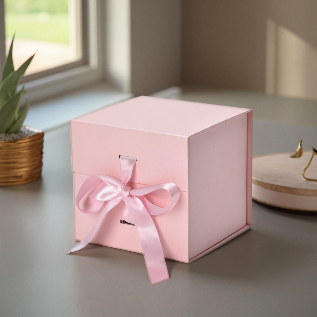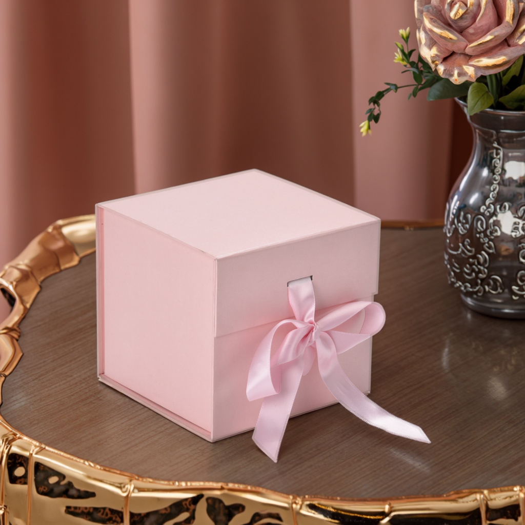 Widened ribbons (1.5-2cm in width) are cross-bound, with a three-dimensional bow tied at the top. Customized gold-embossed text or patterns are available.
