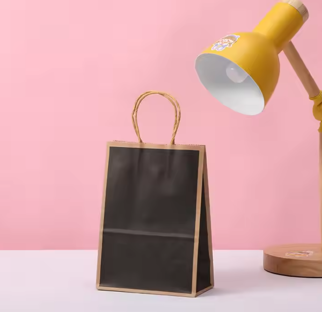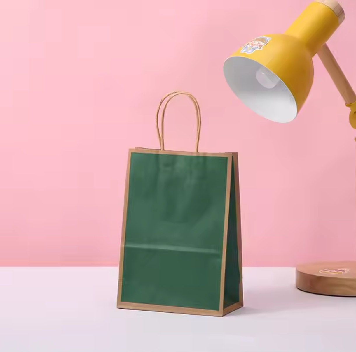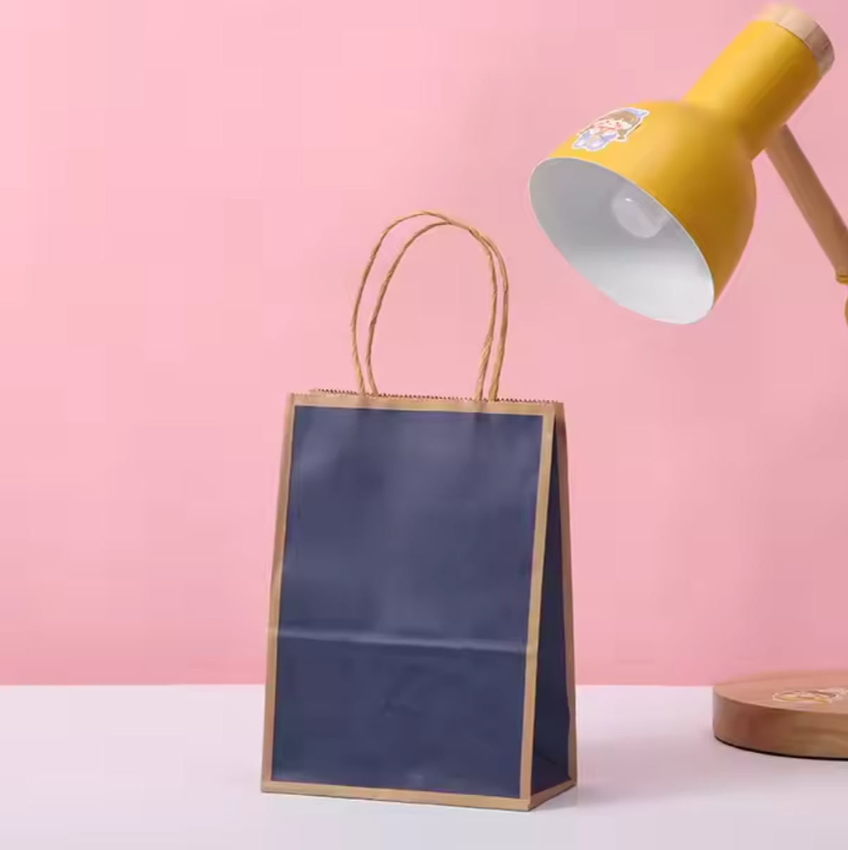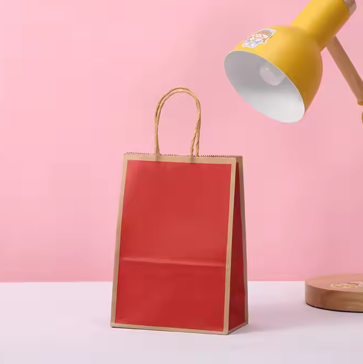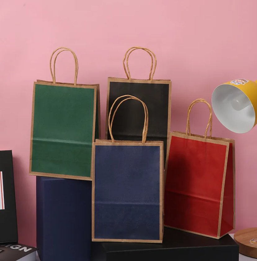Custom Logo Kraft Paper Bag Portable Party Packaging DIY Handbag Solid Color Simple Design Birthday Student Gift Screen Printing