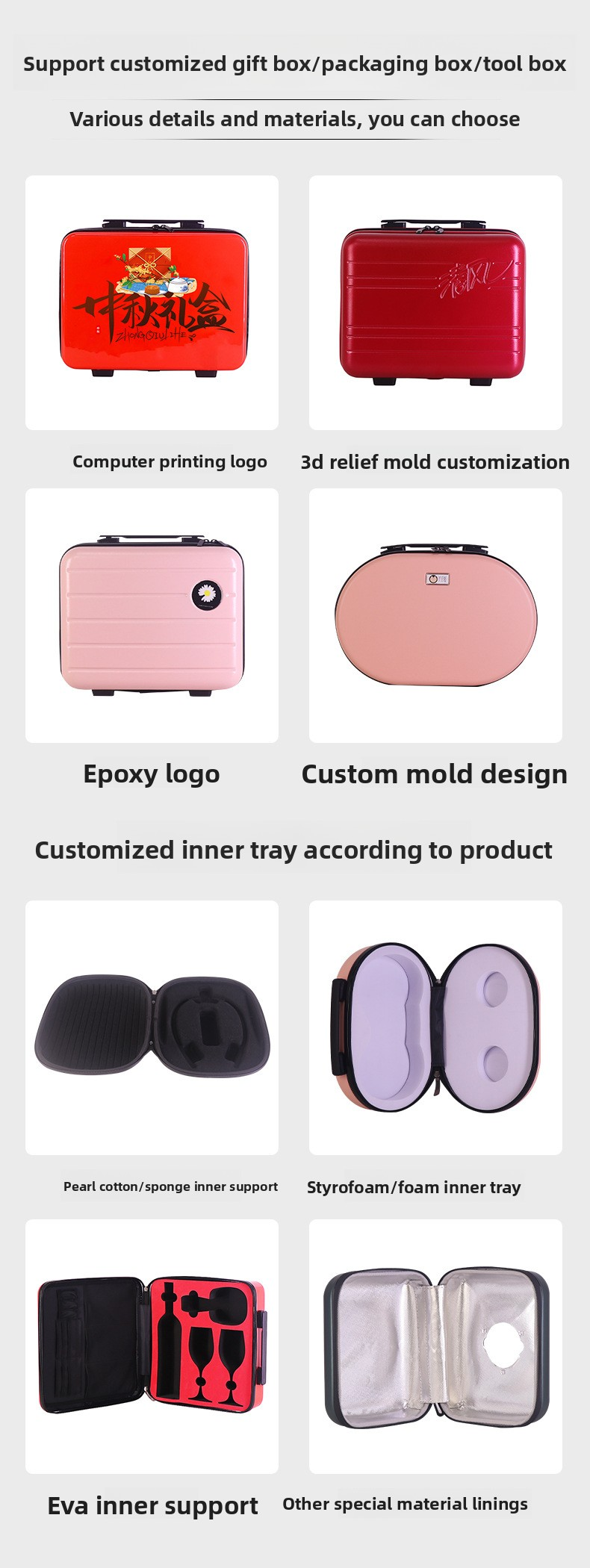 A1: Yes,we do provide OEM and ODM. And we are professional luggage&bag manufacturer, that’s what we are good at. Send logo in AI,PSD, PDF format then, we will make 3D design for yourconfirmation.