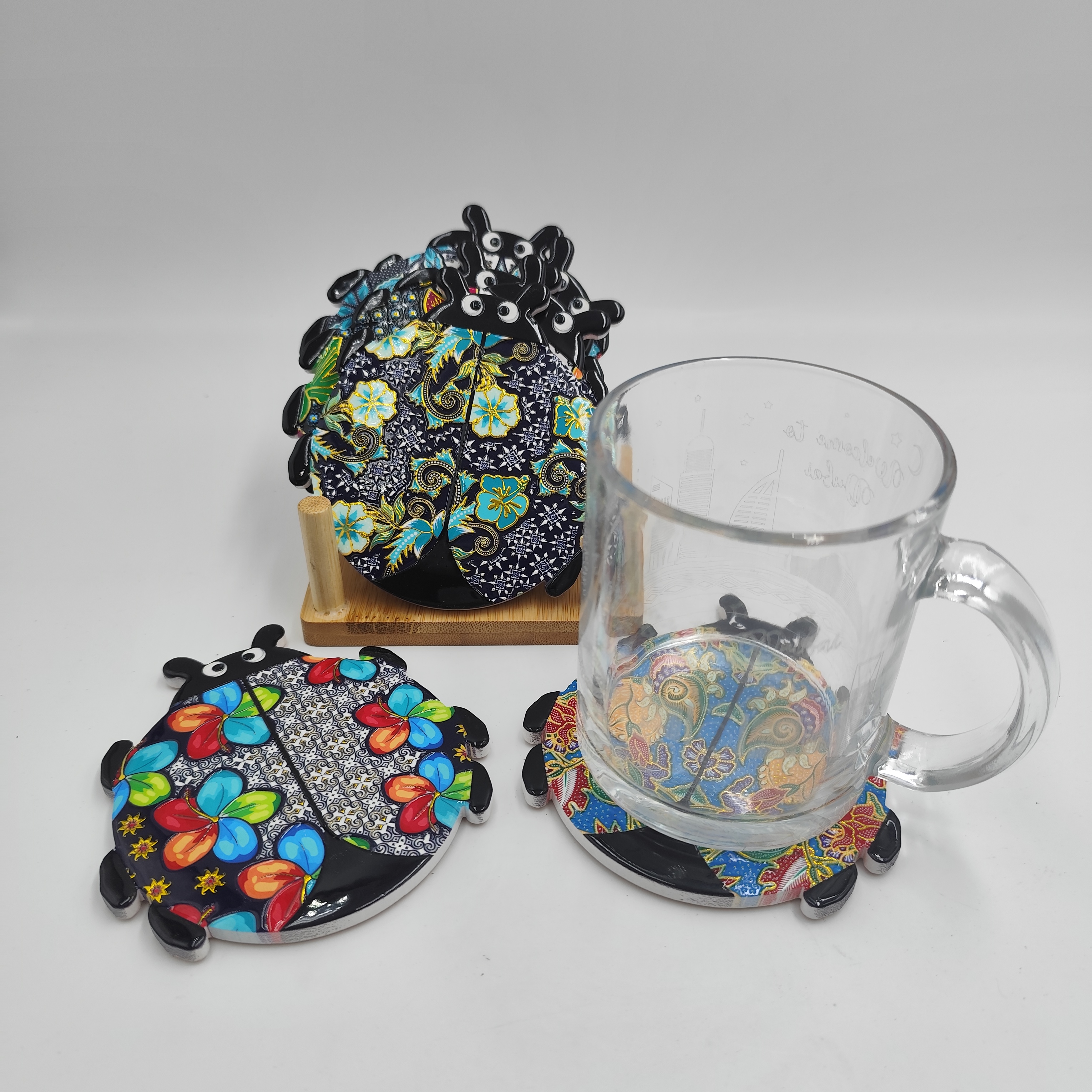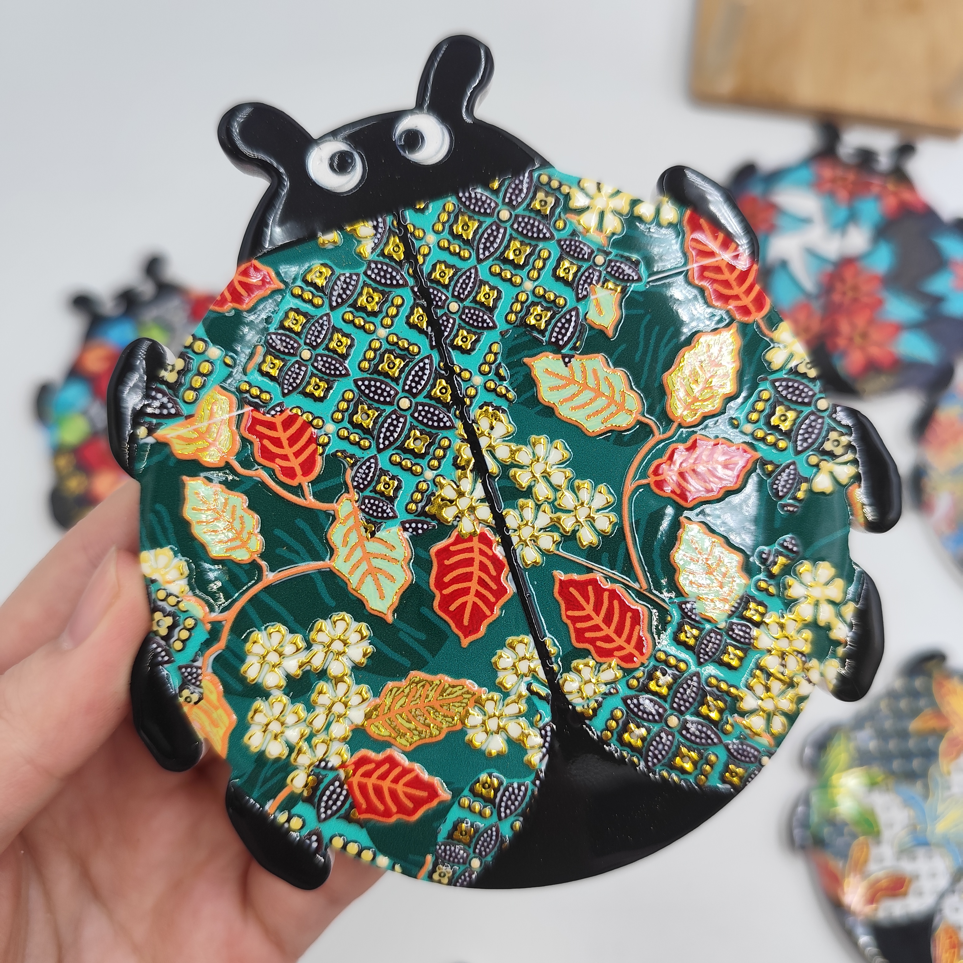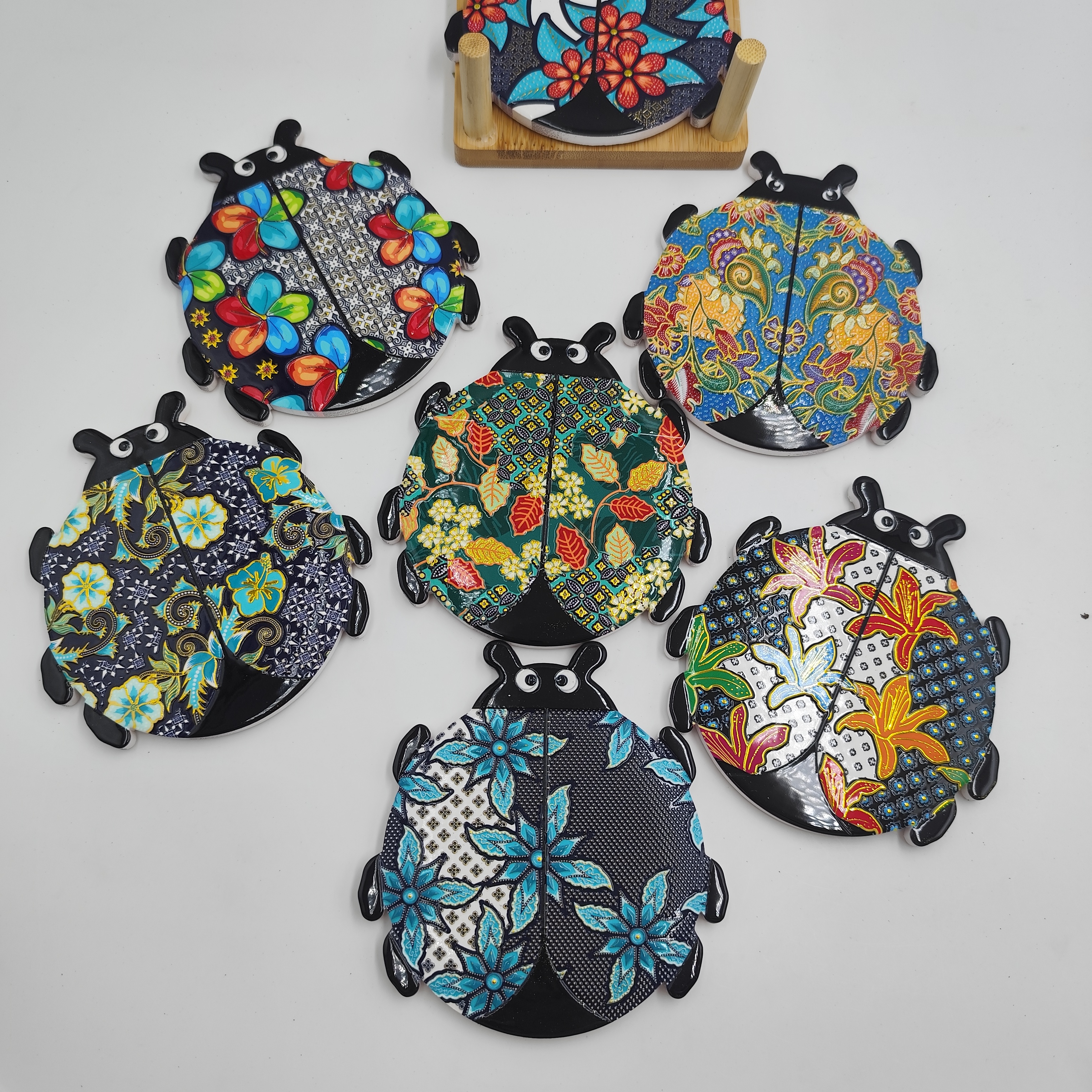 Customizable Seven-star Ladybug Modeling Color Exquisite Relief Contemporary Ceramic Coasters with Promotional Absorbent