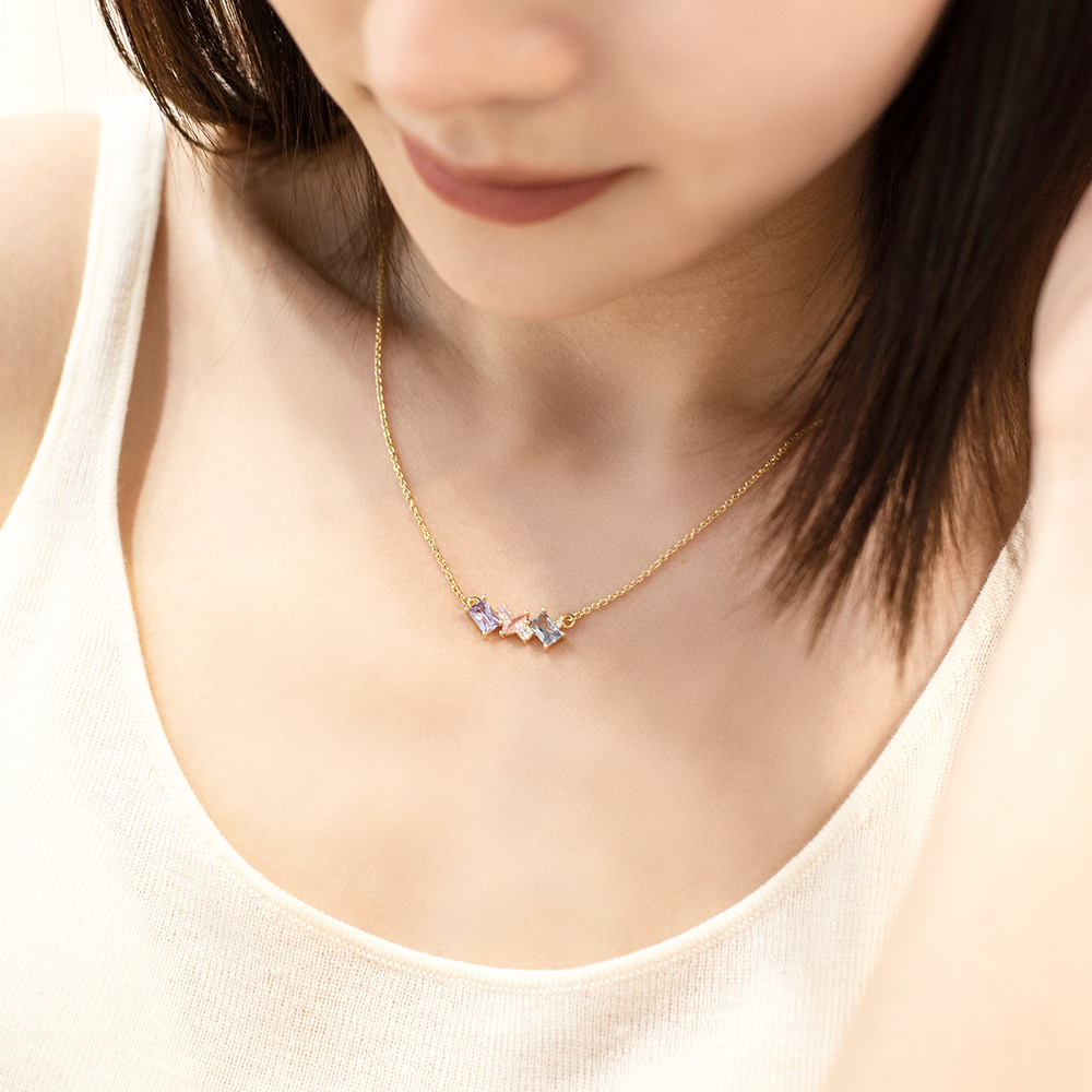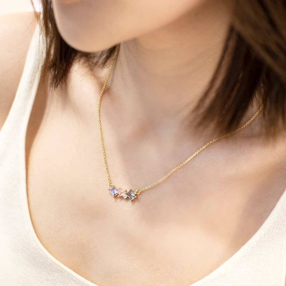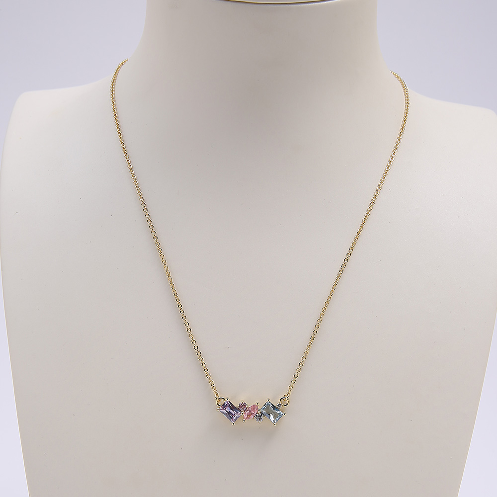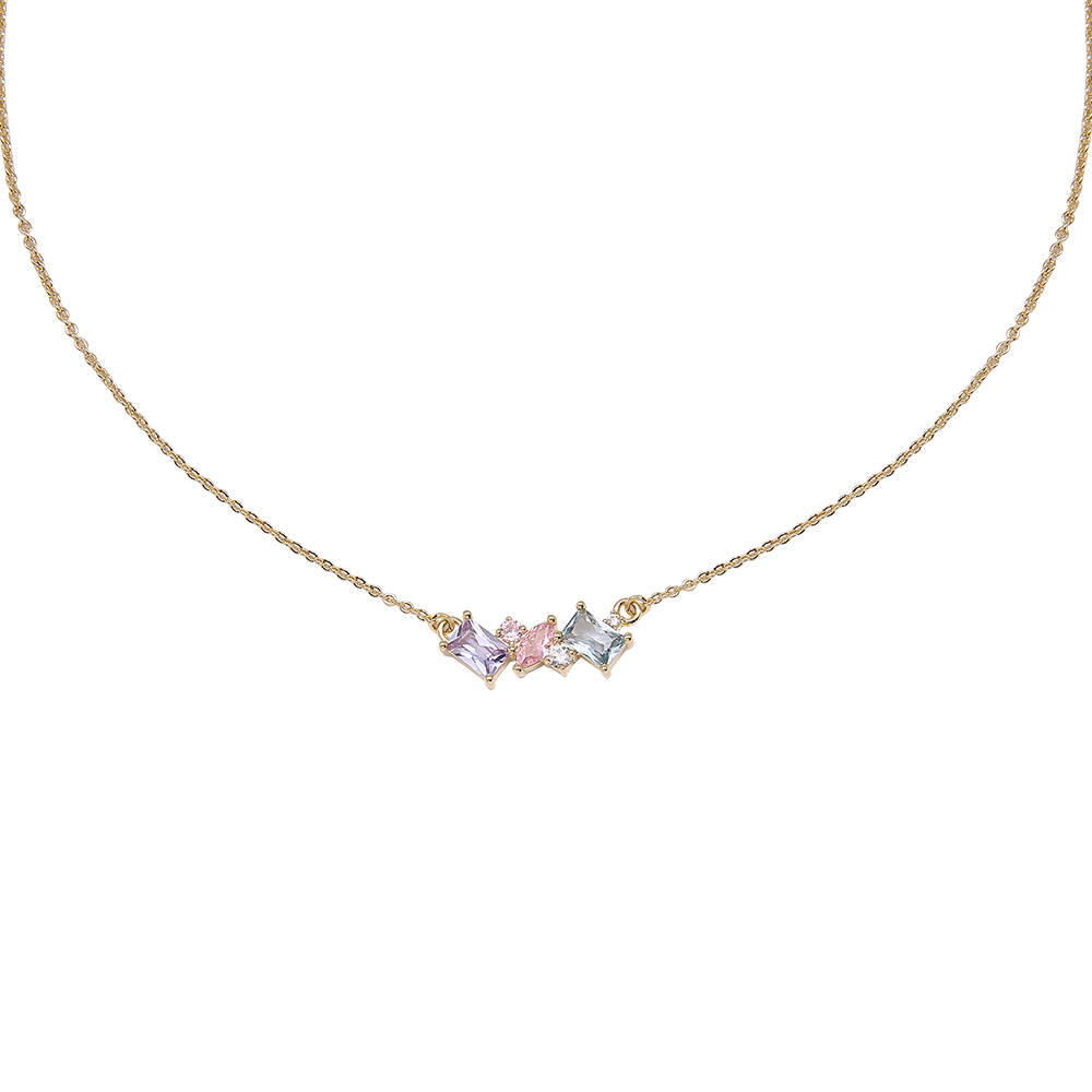 Customized Brass Chain Necklace Women Collares Sparkling Cubic Colorful Zirconia Pendant Necklace