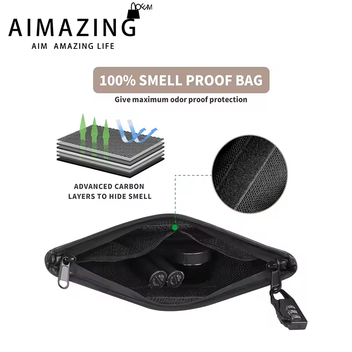 Durable Water-Resistant Design: Aimazing updated the surface of the smell proof bag with advanced water proof coating. At the same time, we use a heavy duty tight-sealed zipper on the smell proof stash container is water resistant.