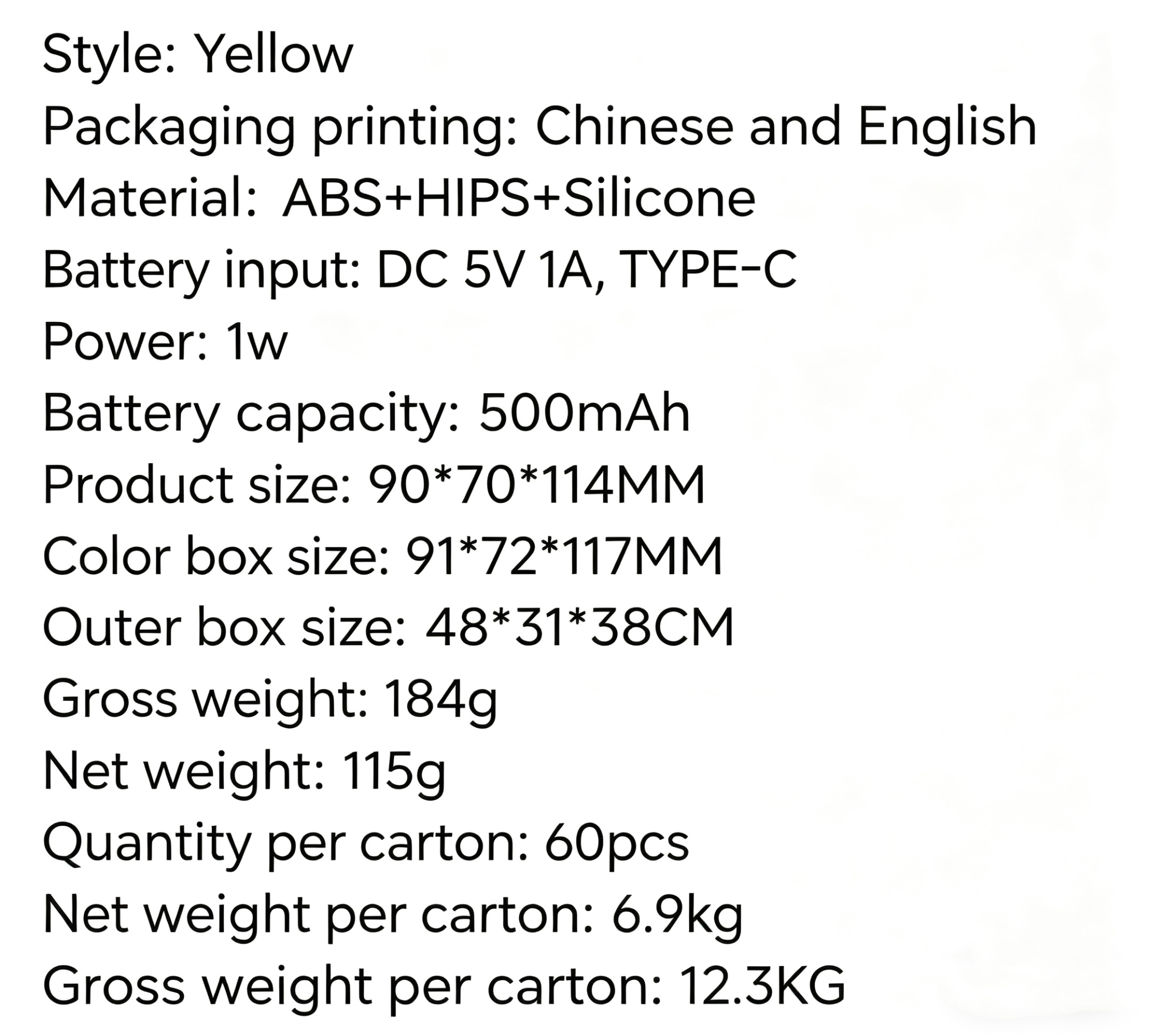 Made of ABS+HIPS+silicone, soft, BPA-free, safe for bedside use and kids.